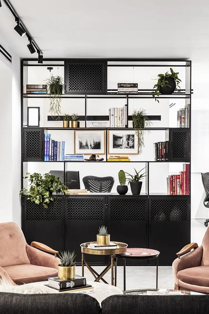 現(xiàn)代照明,復(fù)古地毯,棉布窗簾,用于墻壁裝飾的本地藝術(shù)攝影,植物,書籍和其他配件等,使該寫字樓裝修設(shè)計(jì)空間煥發(fā)出舒適的居家氛圍。