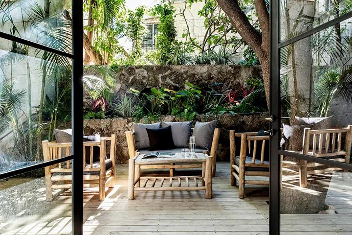 穿過會(huì)議室進(jìn)入后院,使舊的室外防腐木地板,茂密的植被和景觀結(jié)構(gòu)成為可能,深圳裝飾公司配備了寬闊而粗糙的室外木制家具,打造了一個(gè)家庭花園。