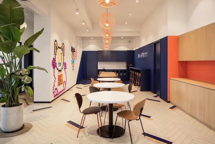 除了擁有團(tuán)隊(duì)可以引以為傲的辦公空間外,他們還希望它像是家庭的延伸。每個(gè)人都是大家庭的一員,這是企業(yè)文化的重要原則。因此,在這種情況下,在家中營(yíng)造舒適的氛圍也是重要的考慮因素。由于公司的迅速發(fā)展,客戶需要一個(gè)更具協(xié)作性的工作空間,包括一個(gè)有組織的大型存儲(chǔ)空間以及一個(gè)多功能的團(tuán)隊(duì)培訓(xùn)和活動(dòng)區(qū)域。因此,辦公室裝飾設(shè)計(jì)團(tuán)隊(duì)將空間劃分為三個(gè)功能區(qū)域:娛樂(lè)區(qū),工作區(qū)和存儲(chǔ)區(qū)。娛樂(lè)區(qū)包括接待區(qū),休閑區(qū)和多功能空間。面向休息區(qū)和咖啡吧的大型會(huì)議室可用于團(tuán)隊(duì)活動(dòng)和大規(guī)模培訓(xùn)。小型會(huì)議室和電話亭將公共空間與內(nèi)部工作區(qū)隔開(kāi)。它不僅阻止了彼此的視覺(jué)接觸,而且在客戶活動(dòng)期間不影響工作和工作的私人需求。