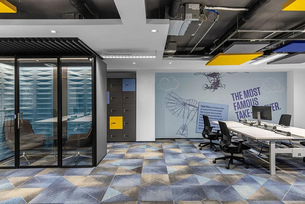 開(kāi)放的空間、多功能、時(shí)尚的設(shè)計(jì),讓裝修設(shè)計(jì)充滿了青春與創(chuàng)新的活力,裝飾公司的設(shè)計(jì)團(tuán)隊(duì)以幾何作為本案的主要設(shè)計(jì)語(yǔ)言,巧妙地將各種元素融入到設(shè)計(jì)中。深圳裝飾公司設(shè)計(jì)團(tuán)隊(duì)精準(zhǔn)把握造型、韻律、圖案之間的關(guān)系,以豐富的裝飾語(yǔ)言營(yíng)造出動(dòng)感十足的辦公裝飾設(shè)計(jì)空間氛圍。當(dāng)員工或訪客走進(jìn)來(lái)時(shí),萬(wàn)花筒般的地板鋪設(shè)帶來(lái)美妙的空間之旅。