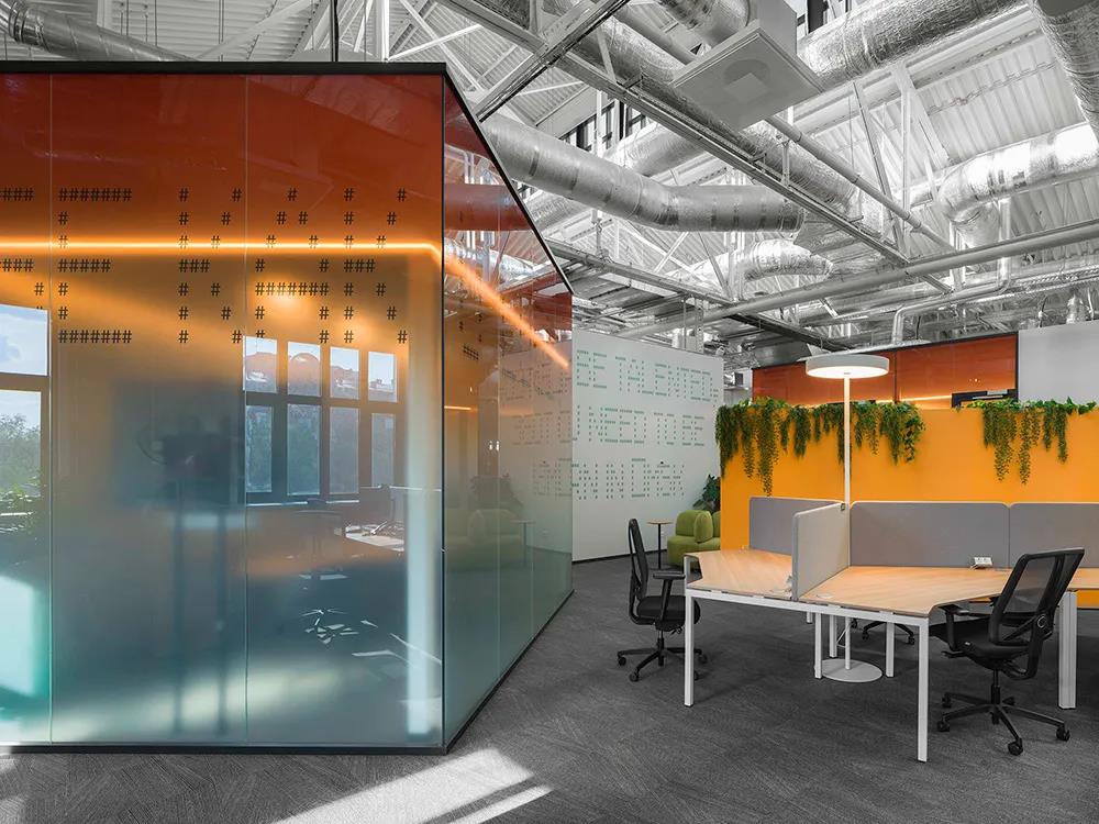 接待區(qū)配備了數(shù)字能量立方裝置——像素聚集在一起,形成強(qiáng)大的能量場(chǎng)。該設(shè)備具有象征意義,意味著這里的辦公環(huán)境具有強(qiáng)大的能量磁場(chǎng),吸引了業(yè)內(nèi)最優(yōu)秀的IT人才。動(dòng)態(tài)環(huán)境設(shè)計(jì)為有效工作注入活力,每個(gè)空間都有獨(dú)特的解決方案。例如,各種形式的懸浮文字、各種圖形和空間中的照明設(shè)備。深圳裝飾公司與現(xiàn)代風(fēng)格相結(jié)合,彰顯時(shí)代氣息,營(yíng)造高效時(shí)尚氛圍:超高工業(yè)風(fēng)格形式的頂部結(jié)構(gòu),以及經(jīng)過(guò)修復(fù)的金屬柱梁,讓會(huì)議室看起來(lái)更有效率。同時(shí),裝飾公司獨(dú)特的紅磚墻永遠(yuǎn)是最好的解決方案之一。